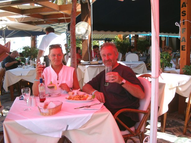 Agios Nikolaos Gezellig op een terrasje aan het water. Monique 5 minuten voor het zat worden, want dat flesje rose was een beetje veel van het goede. Wij hebben er in ieder geval van genoten. |