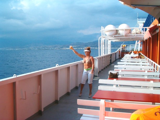 Terug met de grote boot van het eiland Chrissi enkele kilometers ten zuiden van Ierapetra de halve liters Amstel of Mytos gingen er goed in