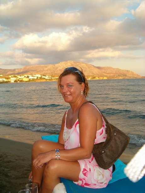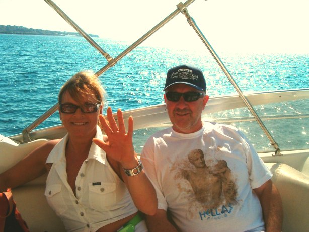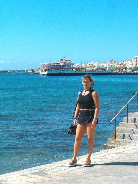 Vertrek met de boot naar Spinalonga het melaatsen eiland, en voor monique alweer een gelegenheid om ze bruin te bakken